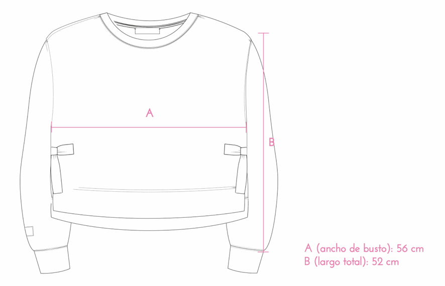 A modo de referencia, la modelo mide 1,77 m y usa talle S/M. La prenda que lleva puesta en la foto tiene las siguientes medidas: