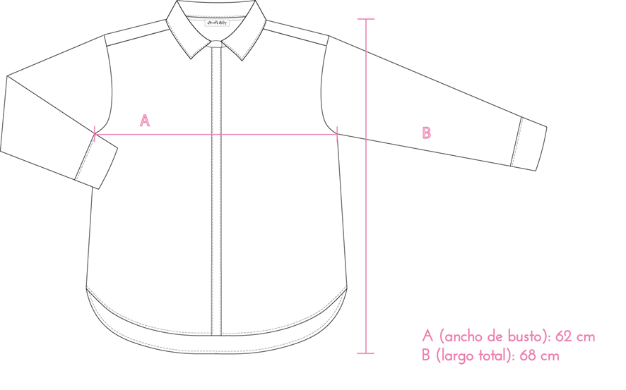 A modo de referencia, la modelo mide 1,72 m y usa talle S/M. La prenda que lleva puesta en la foto tiene las siguientes medidas: