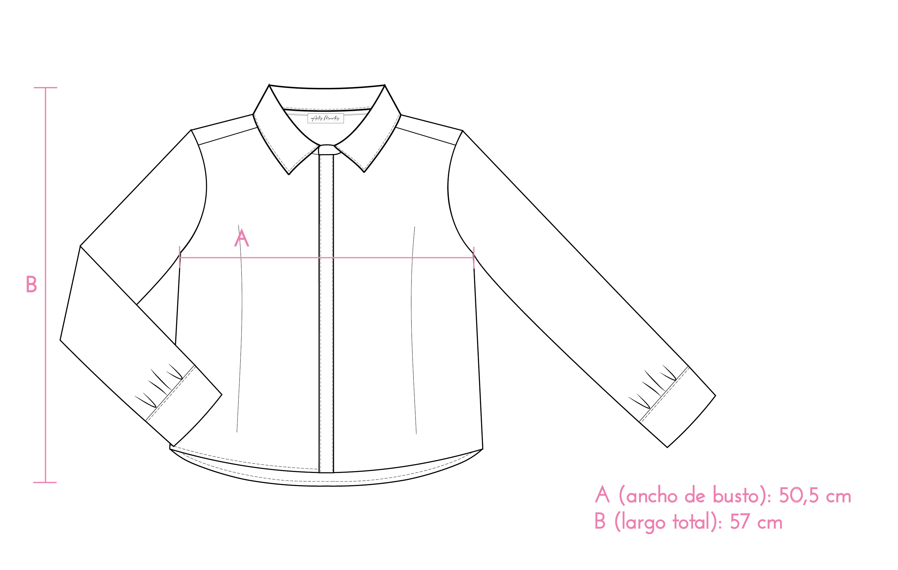 A modo de referencia, la modelo mide 1,72 m y usa talle S/M. La prenda que lleva puesta en la foto tiene las siguientes medidas: