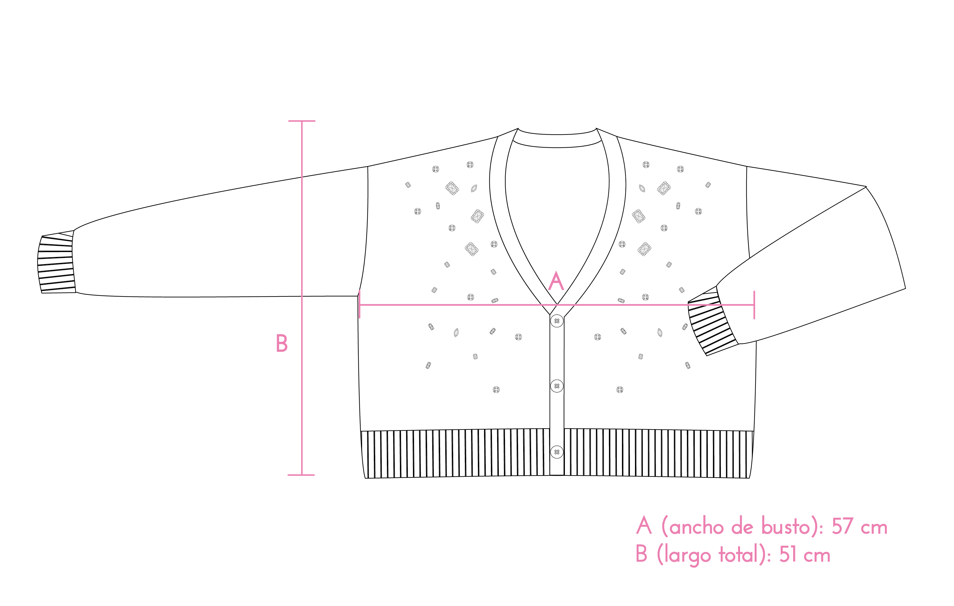 Cárdigan con escote en V y botones a tono. Se destaca por sus strass bordados en forma de degradé, que aportan brillo sutil. Un diseño femenino y versátil, ideal para elevar cualquier look con un toque canchero.