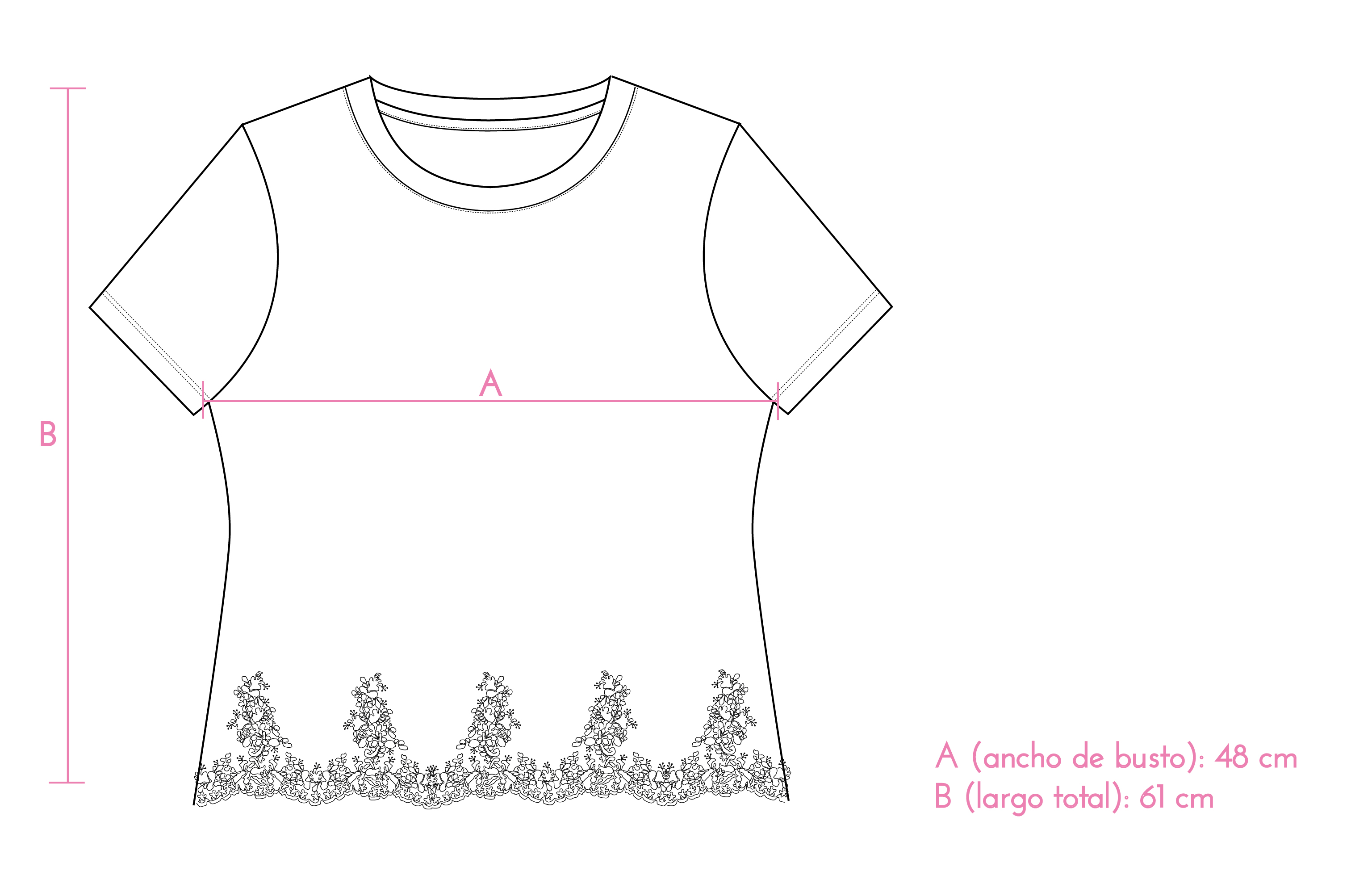 Remera de silueta relajada confeccionada en jersey de algodón con elastano, suave y cómoda. Se destaca por su terminación con puntilla de tul bordado, lo cual le aporta un detalle delicado y femenino.