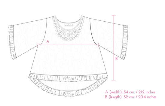 For your reference, the model is 67´ 7” / 1,72 m and she wears a size S/M. The item she is wearing in the photo has the following measurements:
