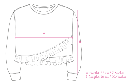 For your reference, the model is 67´ 7” / 1,72 m and she wears a size S/M. The item she is wearing in the photo has the following measurements: